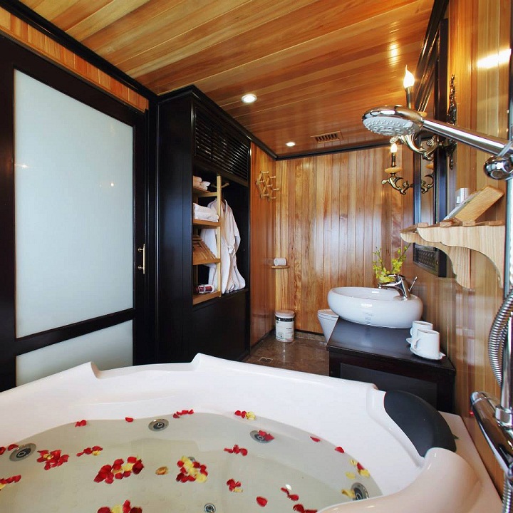 I have to admit that there are many nice wooden junk with super luxury equipment and comforts, but in general, metal boats have more modern comforts for your cruise. One more superior feature is that cabin on metal cruises have more luxurious facilities than wooden cruise thanks to bigger size. Such as Starlight Cruise has big double Jacuzzi in all 32 cabins and huge king size beds for couples. We even can feature mini-golf on the sundeck for entertaining onboard, which a traditional wooden junk can’t offer.